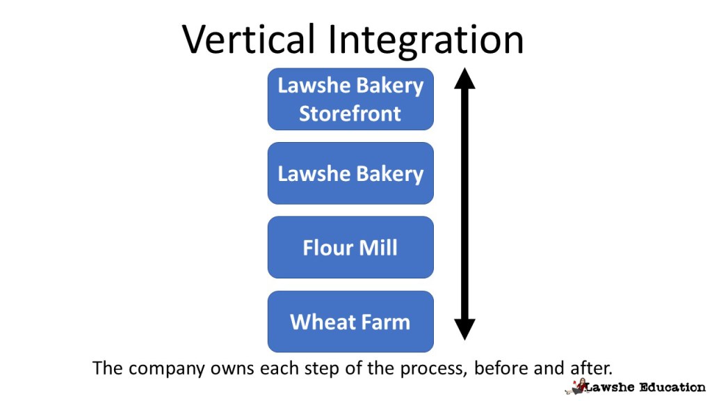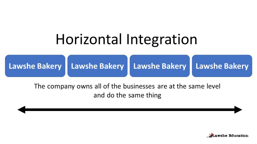 Students traditionally struggle with understanding the differences between verticle and horizontal integration. I draw out on the board examples of what they look like in a bakery format. See the images below. Feel free to download these images to use in your classroom but not for commercial use.